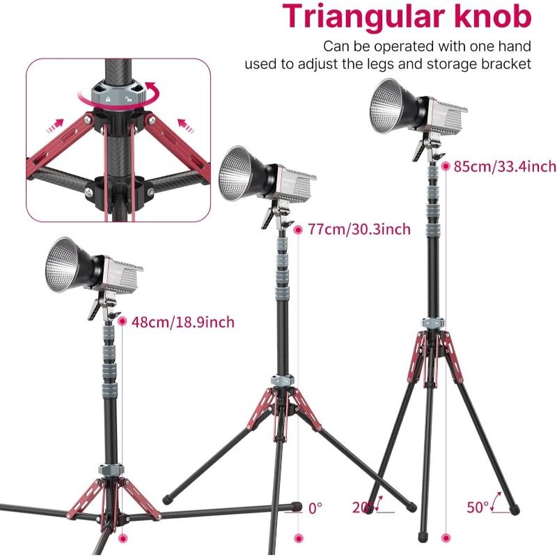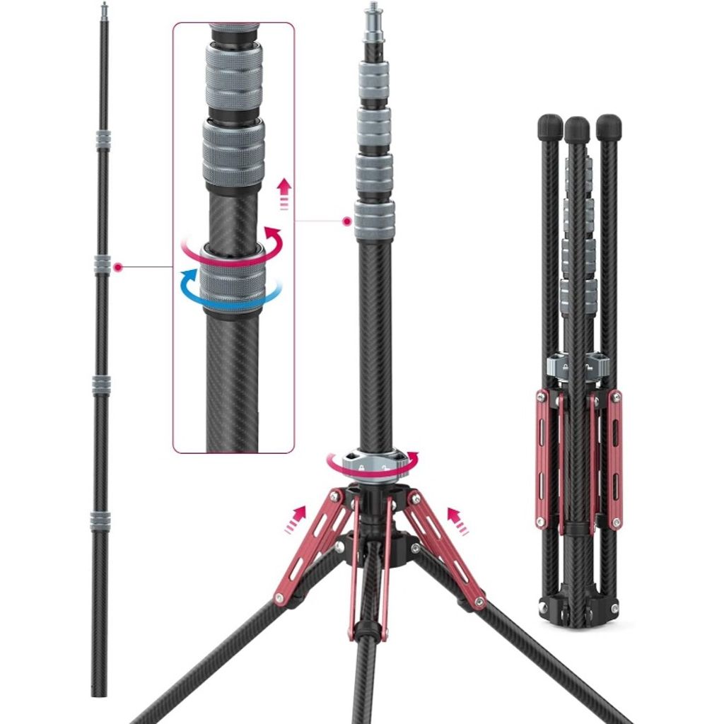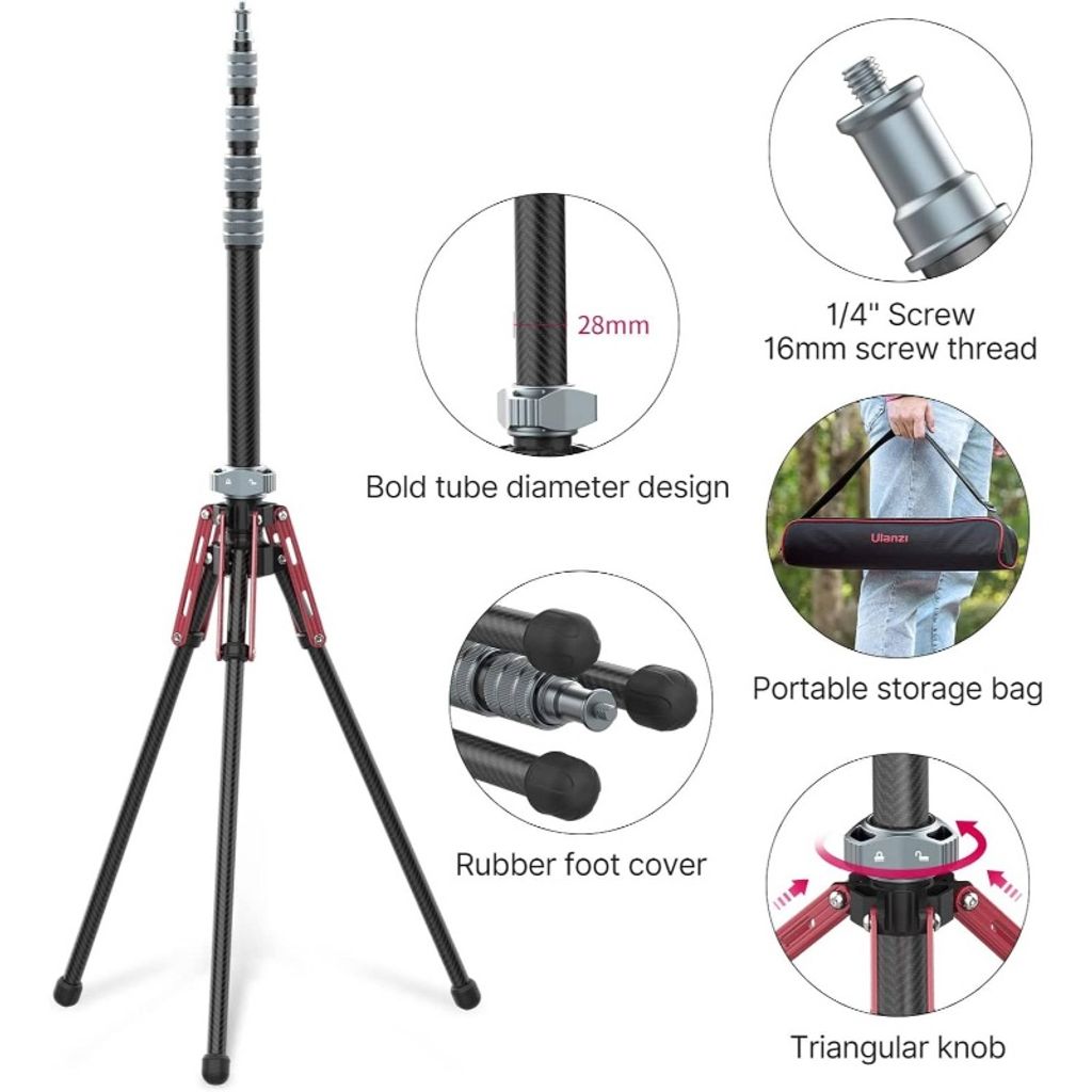 Professional Heavy-Duty Carbon Fiber Photography Light Stand with Adjustable Tripod, Phone Clip Studio Strobe Softbox - Compatible for DSLR Cameras, Smartphones, Flash - Portable System with Carrying Bag