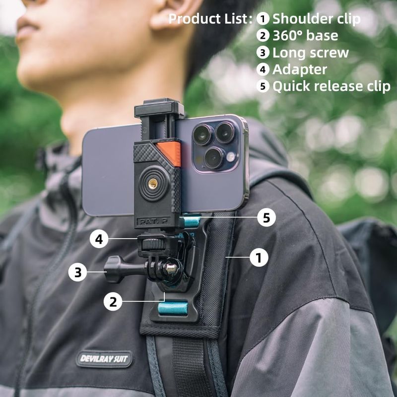 SOH Backpack Shoulder Strap Mount for Phone, 360° Rotation Base Adjustable Shoulder Pad and Strap Mounting System for iPhone, Samsung, Google, LG, Pixel, Xiaomi, All Smartphones