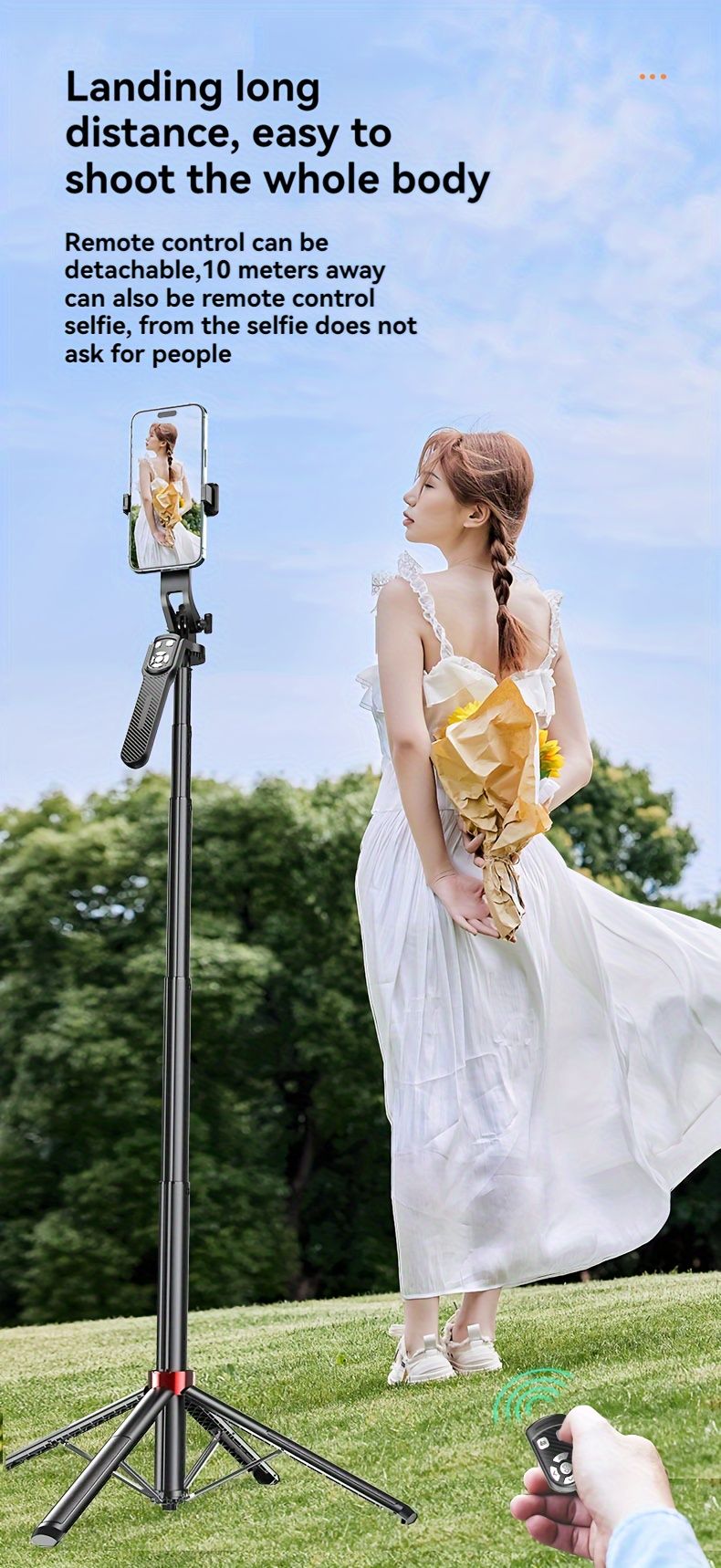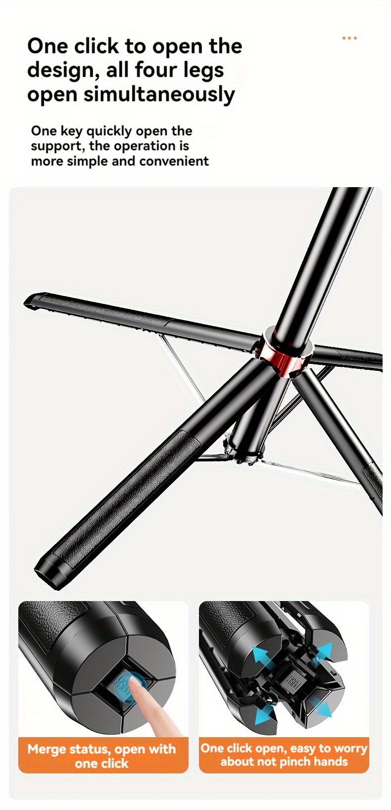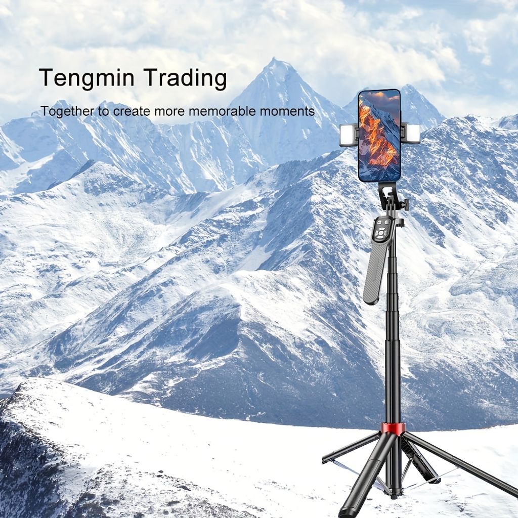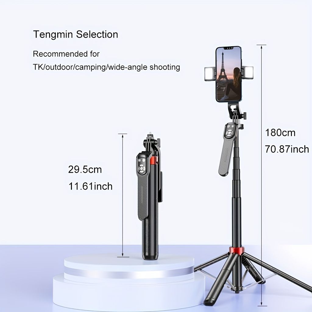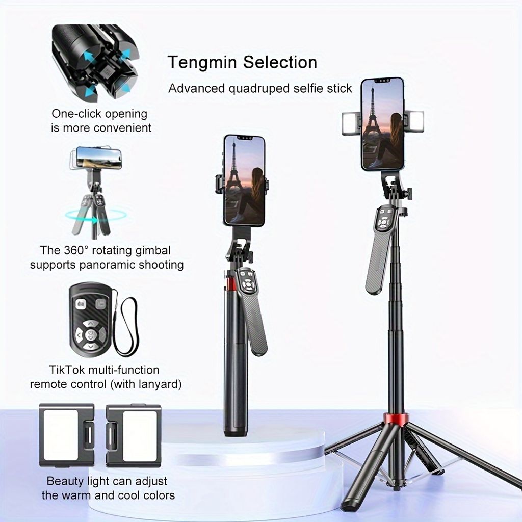 Upgraded Automatic Four-legged Support and Wireless TK Remote Control, Advanced Mobile Phone Holder, Wide-angle Selfie Stick, 360° Rotating Pan Tilt Supports Panoramic Shooting, Aluminum Alloy Body, Expands Up To 1.8 Meters, Comes With 0.25 inch Nut Connector, 2 Free Adjustable Warm And Cool Color Beauty Lights, Storage Bag