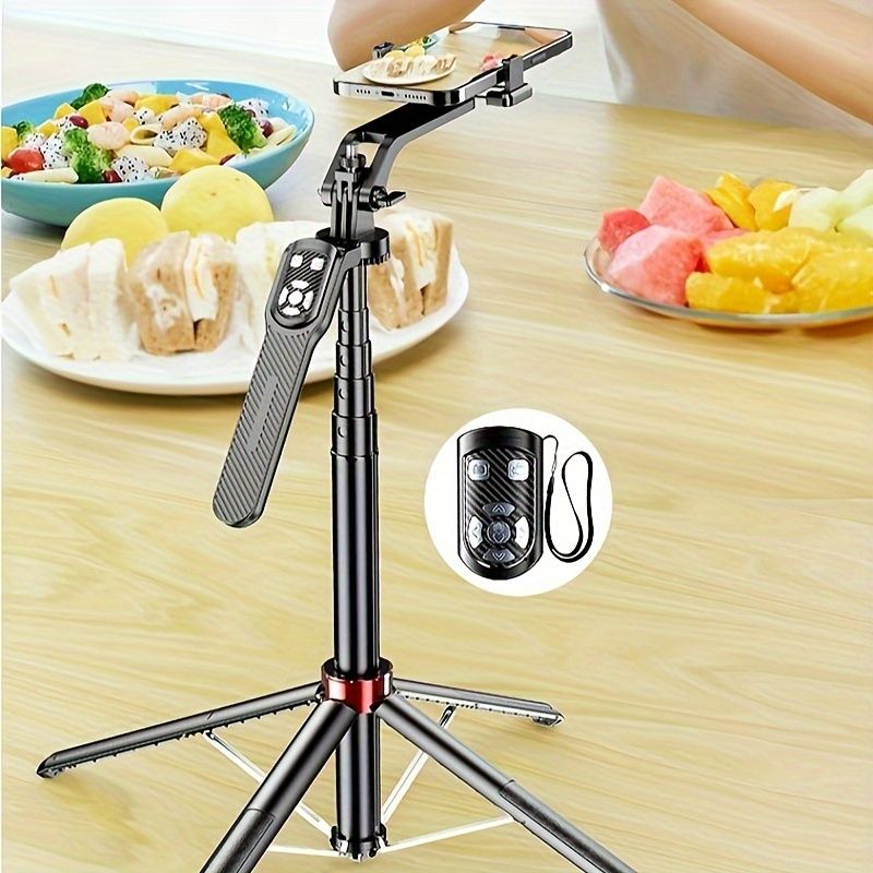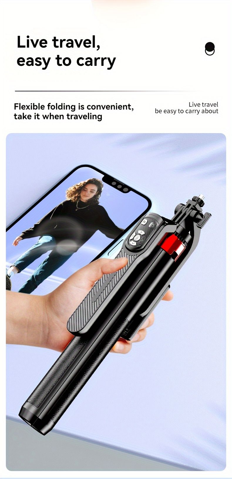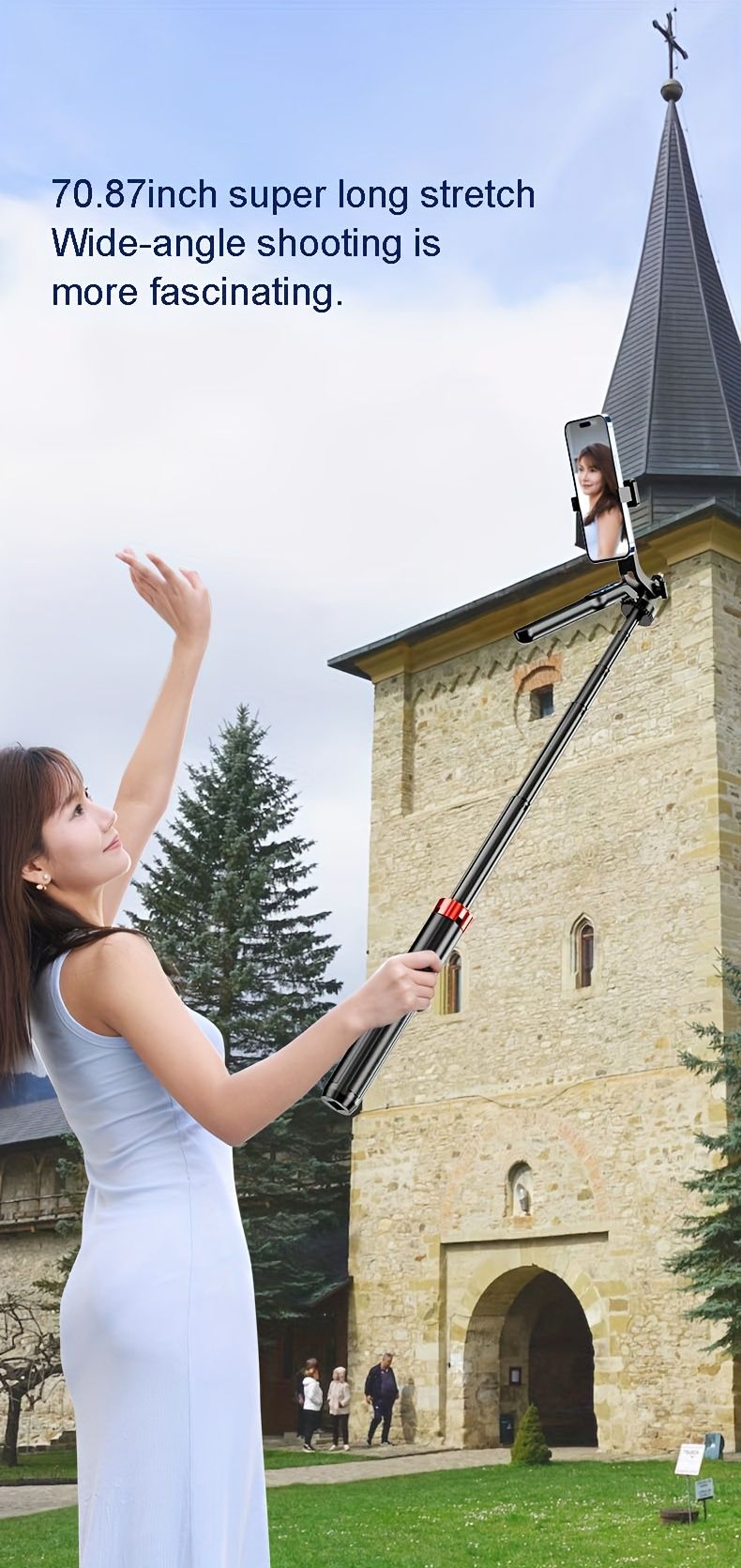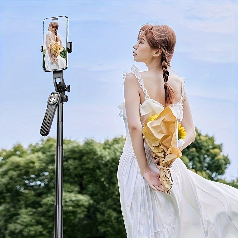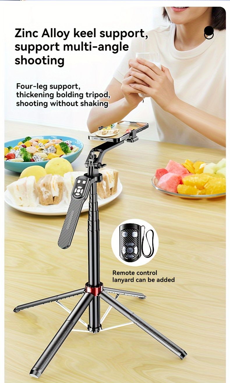 Upgraded Automatic Four-legged Support and Wireless TK Remote Control, Advanced Mobile Phone Holder, Wide-angle Selfie Stick, 360° Rotating Pan Tilt Supports Panoramic Shooting, Aluminum Alloy Body, Expands Up To 1.8 Meters, Comes With 0.25 inch Nut Connector, 2 Free Adjustable Warm And Cool Color Beauty Lights, Storage Bag
